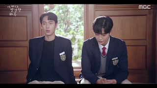 koridor kelas. Dan O melihat ekspresi wajah Ha Roo yang tampak sangat serius